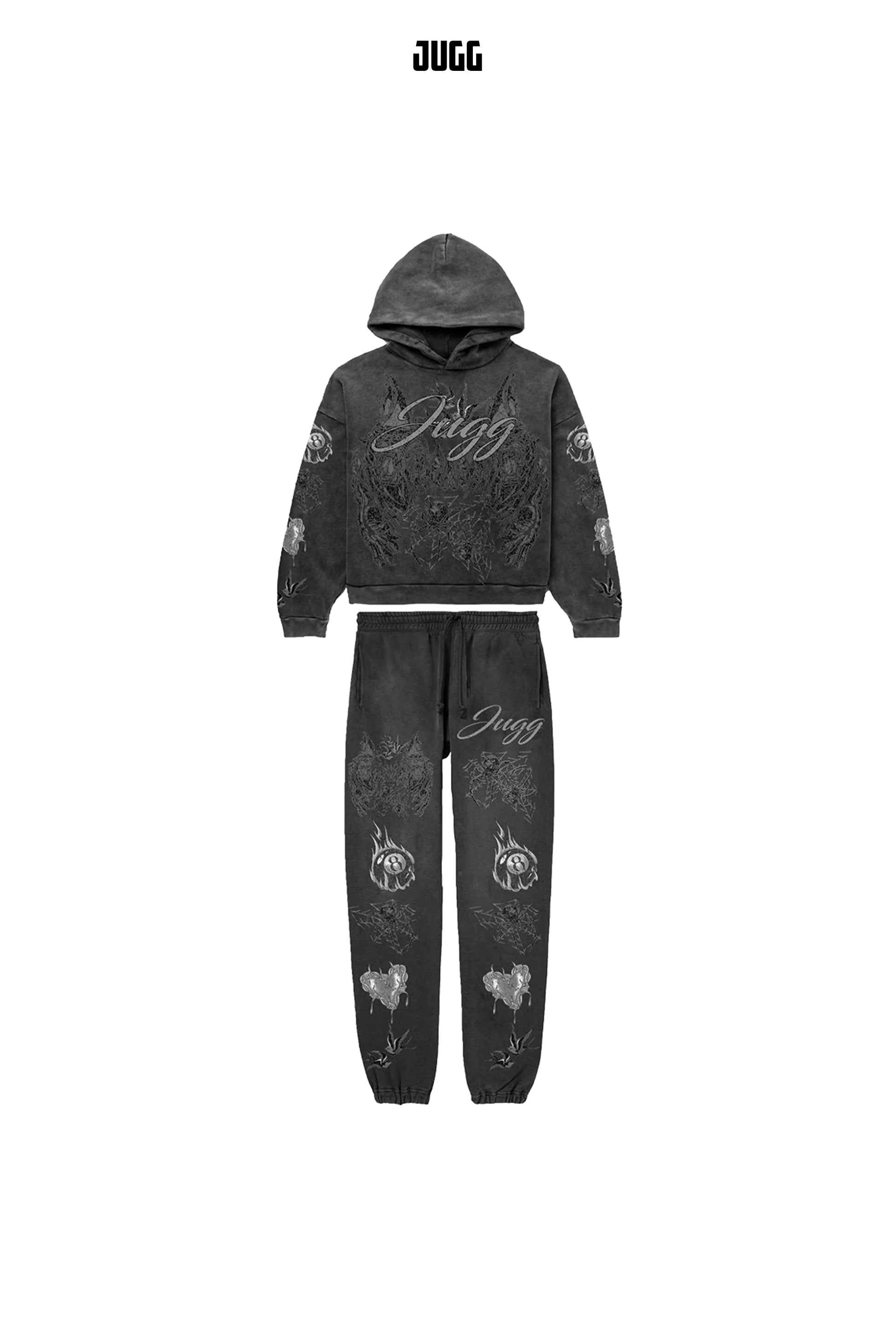 STYLE AND QUALITY MEET COMFORT WITH OUR CHARCOAL SPIDER TRACKSUIT. THIS PIECE IS CONSTRUCTED FROM THE FINEST COTTON & POLYESTER.